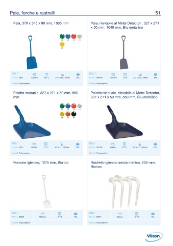 Pala, 379 x 345 x 90 mm, 1035 mm Pala, rilevabile al Metal Detector , 327 x 271