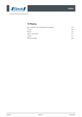 Indice 13 Plastica 225 Box contenitori per conservazione e trasporto 239 n i Cuca 252 Bucato 254 Secchi e strizzatori 257 Cestni i 258 Ulteriori prodotti Pagina 227 Ebnat AG www.ebnat.ch